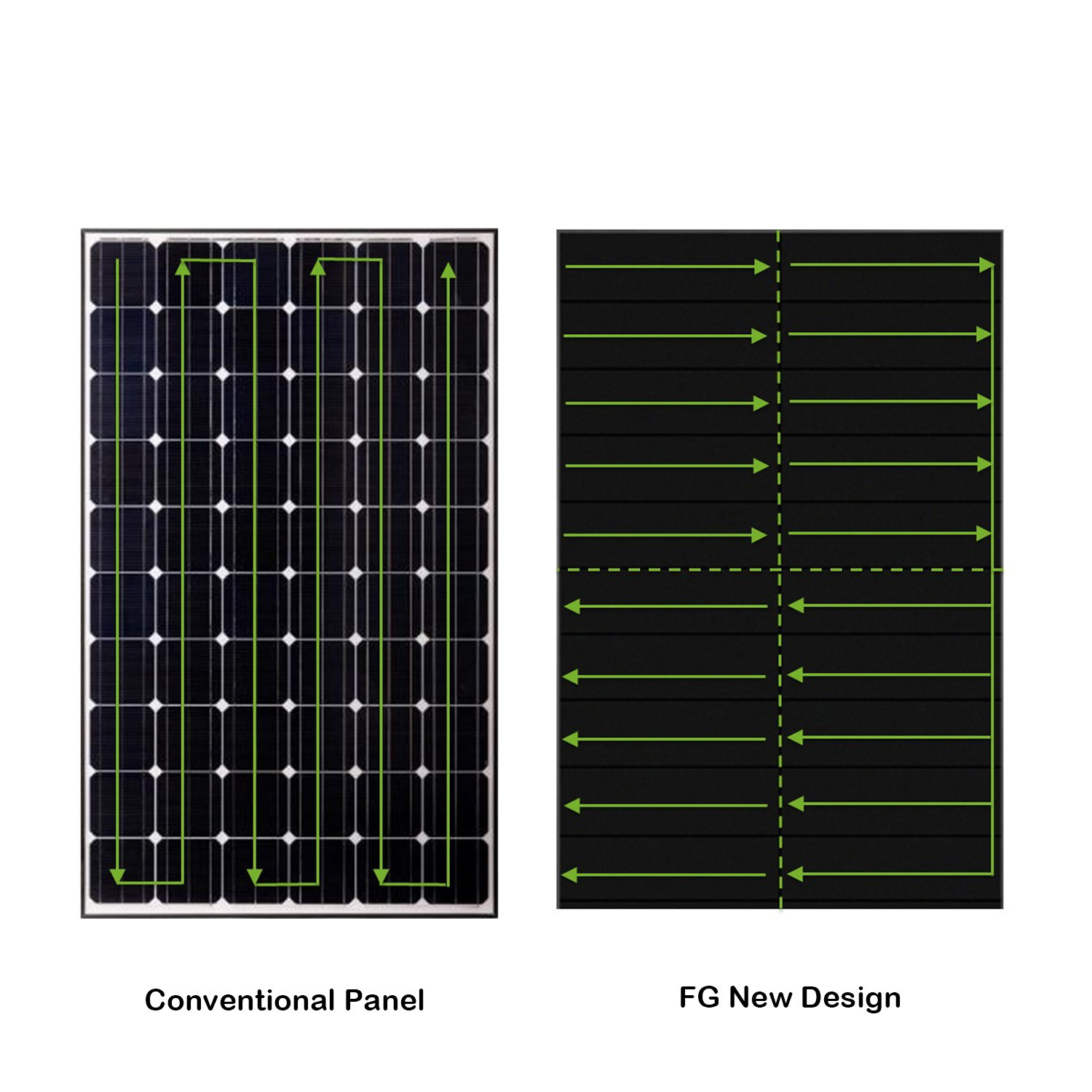 High efficiency - no main grid occlusion on the front, improve battery conversion efficiency, excellent power generation performance under low light conditions