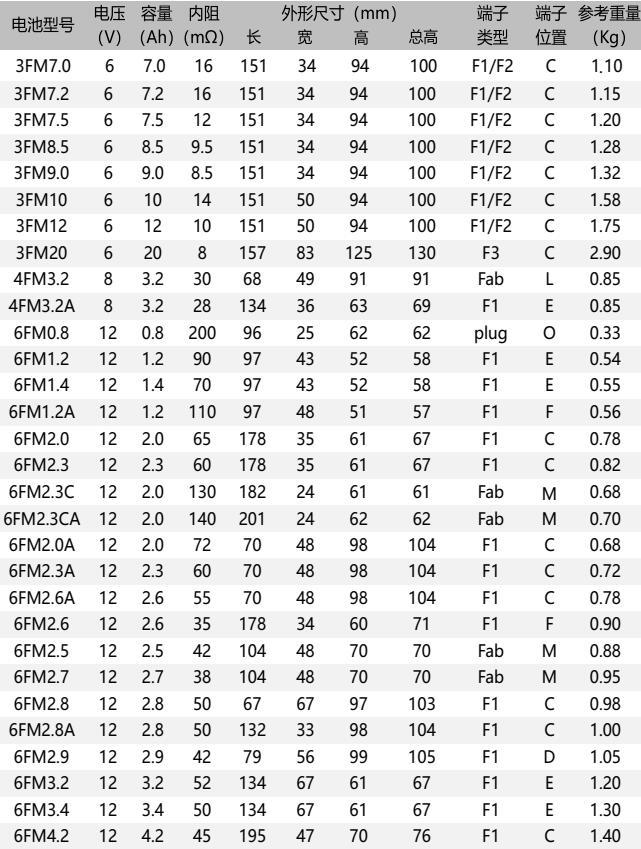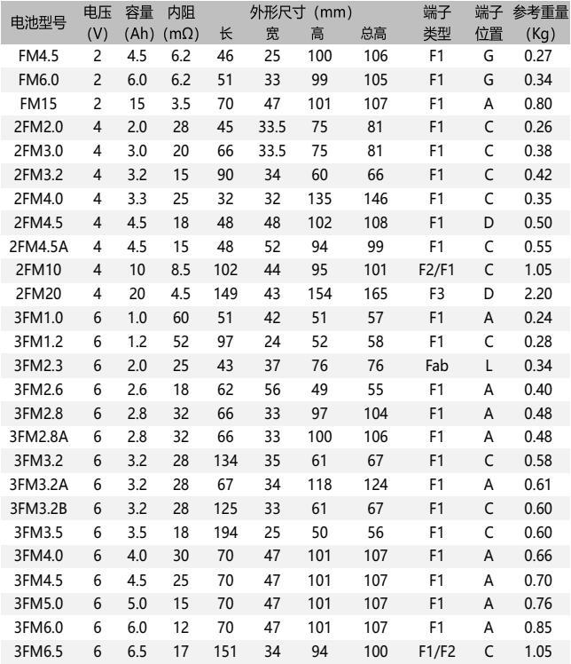 Rated capacity: 2.6Ah to 250Ah (10 hour rate capacity, 25°C)