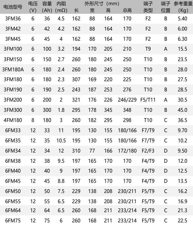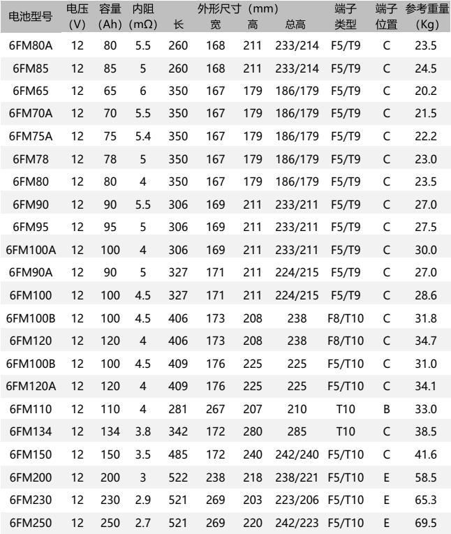 Rated capacity: 33Ah to 250Ah (10 hour rate capacity, 25°C)