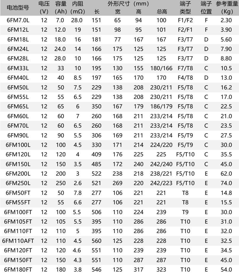 Rated capacity: 7.0Ah to 250Ah (10 hour rate capacity, 25°C)
